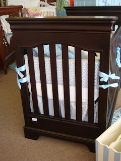 This is his diaper bag, a life sized stuffed Lab (like our Molly), a basket to hold lots of baby stuff, and a red/off white gingham picture frame. All of these things came from 5 Little Monkeys in Murfreesboro. This is also where his bedding and crib came from. It is such an adorable store!